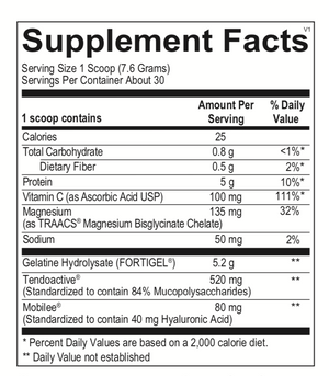 1 scoop (7.6 grams) in 8 oz of water or the beverage of your choice per day or as recommended by your health care professional. Can also be added to food and baking products.